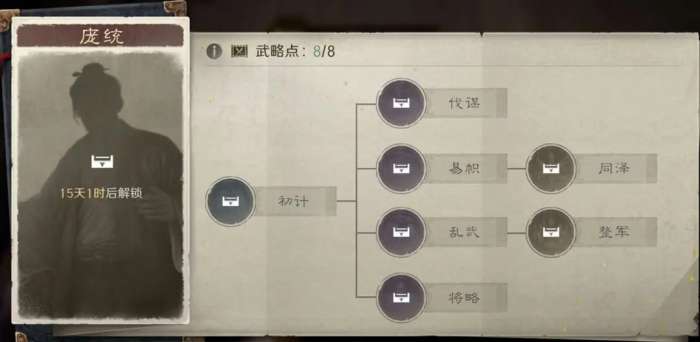 【将略】分支激活“舍生取义”:战斗前2回合,使我军武力最高单位获得“清醒”状态,庞统自身获得震慑;战斗前3回合,提升己方全体连击率15%–30%,并提升全体输出伤害10%–20%。该分支侧重团队增益与关键单位保护,强化爆发节奏与容错能力。