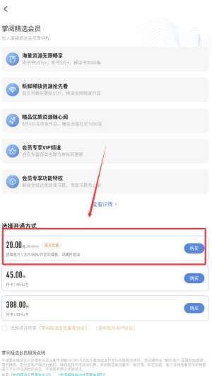 掌阅精选怎么开会员?