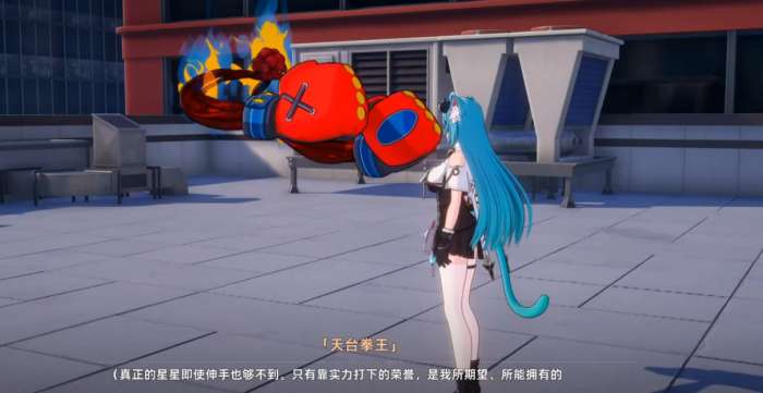 到了这个位置之后,天台拳王就会出现在视野里了。这个NPC站在天台上等着玩家,看起来还挺有气势的。走过去跟他对话,然后打一架,战斗难度不算太高,正常打就行。打完之后任务就完成了,还是挺简单的。