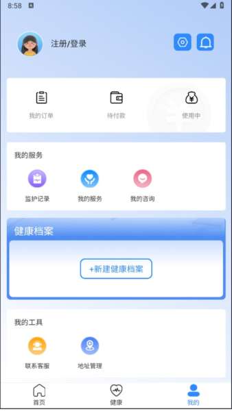 微胎心app怎么使用,大家在本站自行下载,点击同意并继续,就会出现下面这个页面,大家可以根据自我情况进行登录或者注册,查看我的就可进行孕期任何检测项目。
