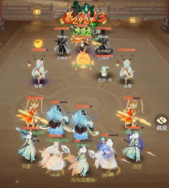 后边的召唤师可以自由控制,封了之后无法召唤,具体的攻击模式以单排或者竖排为主,两个仙鹿以治疗为特色会复活,不过小伙伴们在攻击的过程当中并不用想那么多。首先在开局时优先点击怨雷,清理之后再去控制左右两边的宠物。