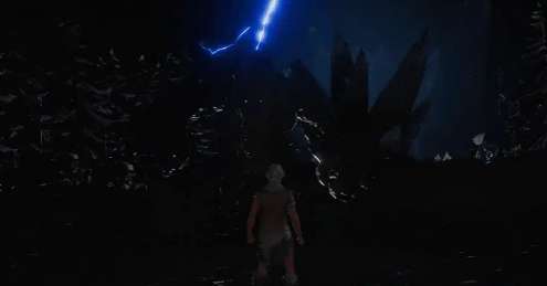 可以说无光森林比黑暗森林更极端,几乎看不见任何东西。要不是有荧光浆果或者像日升之冕这样的皇冠,角色根本没法继续前进。幸好,光源一旦开启,能让你稍微看到一些东西。这里的资源特别珍贵,像黑曜结晶和暗蚀松木都可以在这里找到。除此之外,还有些很厉害的敌人,像影裔骑士,打败它们能掉一些很稀有的东西,比如暗核碎片,能帮你做些特别的装备或者任务。