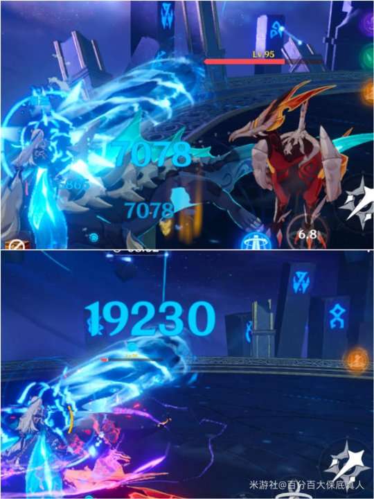 对于高抗性的水圣骸兽,减抗前后伤害由7078提升到19230,提升伤害171.68%(可以看成砂糖提供了约85%伤害提升)。