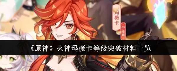 原神火神玛薇卡等级突破材料要哪些?原神里面大家想要去培养这个火神玛薇卡的,那么要是想升级突破这个火神玛薇卡的话是需要准备好火神玛薇卡需要的材料的呢,可以赶紧去收集的呢,那么要是不会的话下面一起来看看吧!