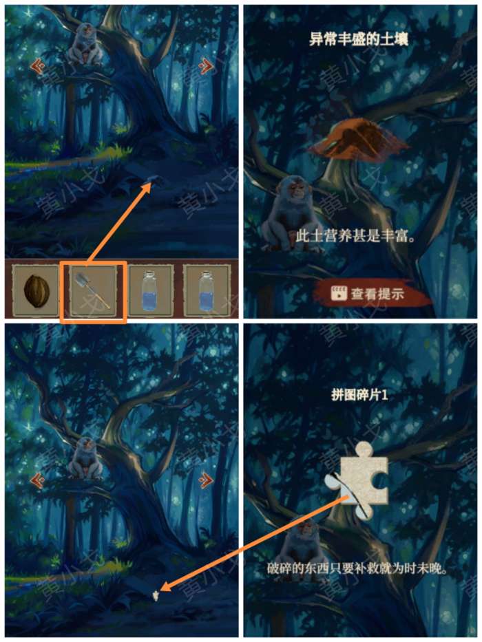 20.用【铲子】挖取地上的【异常丰盛的土壤】;在土壤下方获得【拼图碎片1】