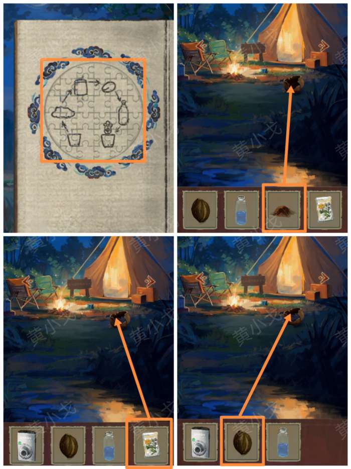 22.点击草丛上的《本草全观》,放入【拼图碎片1】、【拼图碎片2】、【拼图碎片3】和【拼图碎片4】