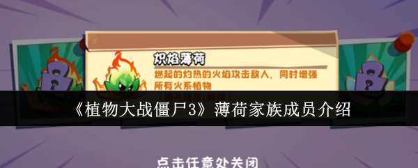 植物大战僵尸3薄荷家族成员有哪些?植物大战僵尸3薄荷家族成员是不少玩家所关注,毕竟薄荷作为一个特殊的种类,带有不同的能力效果,以及战场干扰能力,了解它们能有效帮助大家更好的抵御僵尸,那么薄荷家族成员究竟有哪些,本篇文章就来依次给大家介绍一下,感兴趣的朋友们赶紧一起来看一看吧。