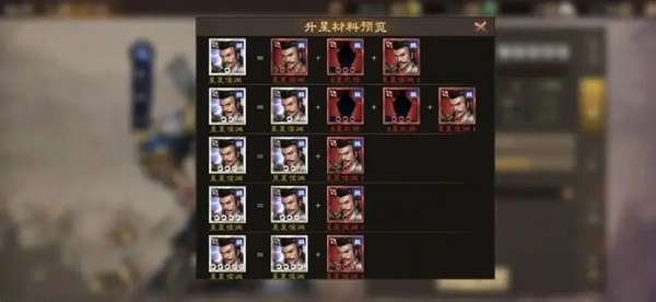 升星需要获取是本体武将+本阵营其他武将,需要注意的是:初始系统设置为三星的武将,比如于禁、曹洪、乐进,最高只能升级到8星,俗称狗粮;而其他系统五星武将,比如荀攸、徐晃等,不推荐作为狗粮使用,誓盟配置有战斗力之后,一些日常活动会上场,后期也是要培养起来的。