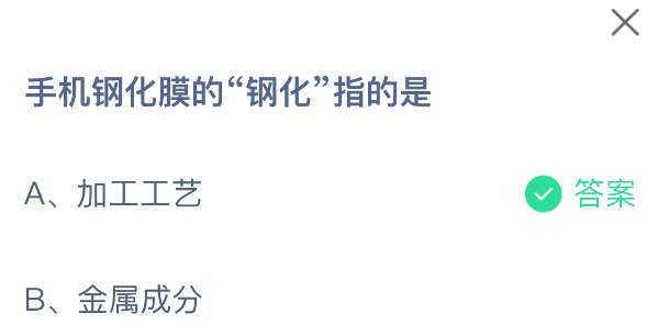 手机钢化膜的“钢化”指的是?支付宝小鸡课堂开课啦!每天花一分钟答题赚饲料,喂喂小鸡就能贡献爱心啦!轻松又意义十足!2026年2月13日蚂蚁庄园的小鸡课堂题目正确答案是【加工工艺】,手机钢化膜中的“钢化”并非指添加了金属成分,而是一种物理或化学加工工艺。