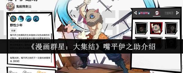 漫画群星大集结嘴平伊之助怎么样?在《漫画群星大集结》众多可选角色中,来自《鬼灭之刃》的人气角色嘴平伊之助以其独特的坦克定位和灵活的战斗风格脱颖而出。漫画群星大集结嘴平伊之助怎么样?本期攻略将完整解析伊之助的技能特性以及实战技巧,帮助玩家从入门到精通掌握这位野性十足的战士。无论你是刚接触游戏的新手,还是希望提升伊之助使用技巧的老玩家,都能让你在3v3的战场上充分发挥伊之助的冲锋陷阵能力,成为团队不可或缺的前排核心。