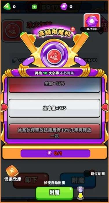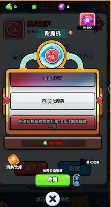 附魔可附加技能伤害、元素加成、伙伴再释放几率等稀有词条,让输出质变。