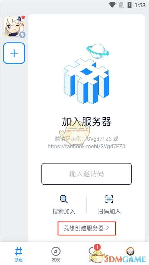 1、进入Fanbook最新版,在频道出点击我想创建服务器