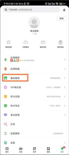 2、在个人界面可以看见很多与自己息息相关的功能,这个时候我们点击【我的壁纸】。