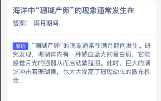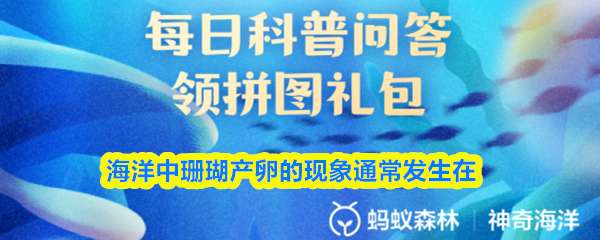 海洋中“珊瑚产卵”的现象通常发生在?【神奇海洋】2026年2月6日新题目已开答!正确答案现已公布,点击领取拼图,一起为修复海洋生态贡献力量!今日正确答案是:【满月期间】。“珊瑚产卵”的现象通常在满月期间发生。
