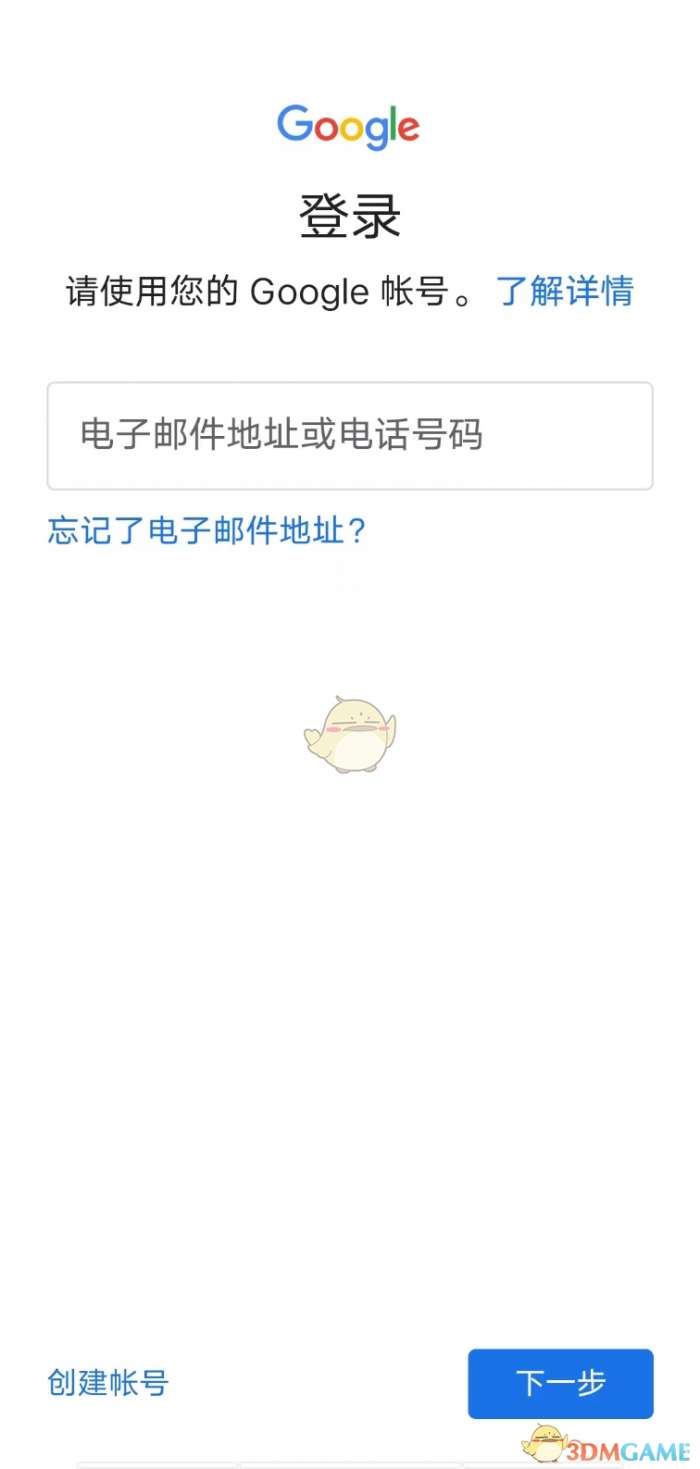 2、在启动页面,选择【登录账号】或下面的【登录谷歌账号】来登录你的谷歌账号;
