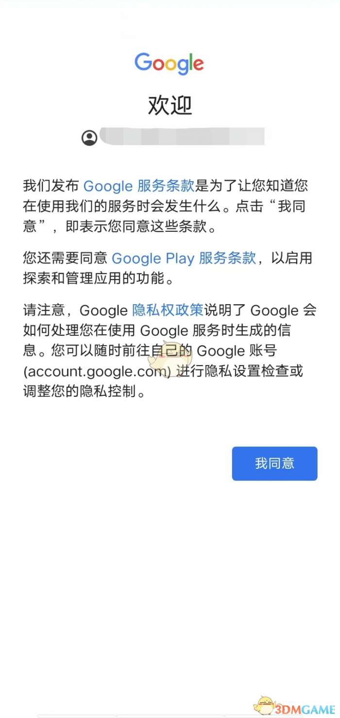 9、在谷歌服务页面上,右下角将显示[接受]按钮。点击接受谷歌服务。