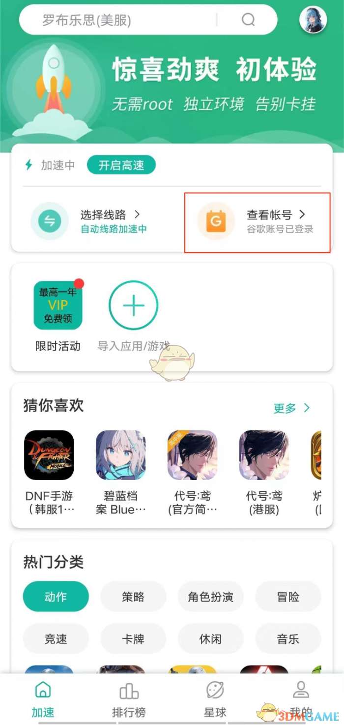 10、最后,页面启动并显示谷歌账号,表示OurPlay已经成功登录谷歌账号。