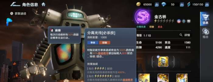奥特曼光之战士金古桥核心机制来源于那套将防御格挡与辅助保护完美融合的战斗体系。实战中的金古桥的被动能量盾可以提高20%的格挡率,使该角色面对高频次的攻击时有很强的生存底气。将基础硬度和被动触发深度绑定在一起的逻辑,配合必杀技分离光线产生两回合麻痹判定,使金古桥在面对单体BOSS的时候有很高的战术权重,可以在受到伤害的同时限制对手的行动自由。