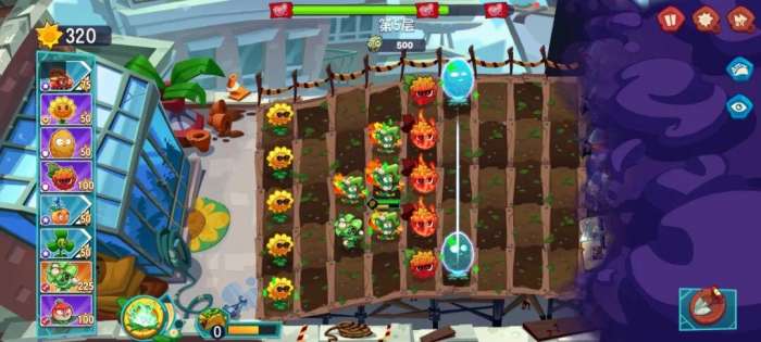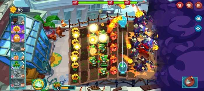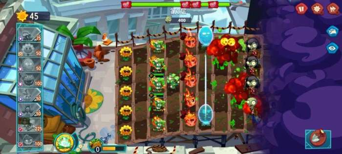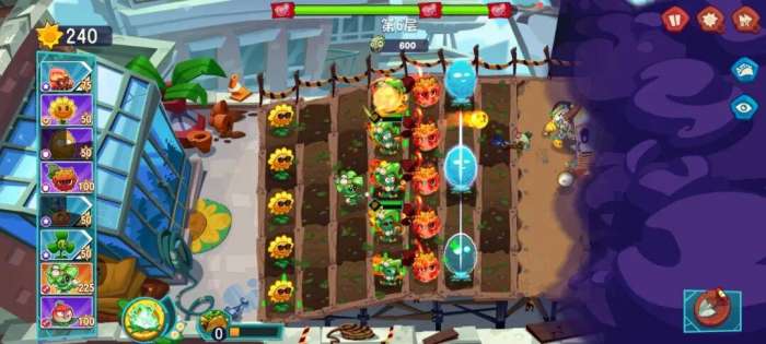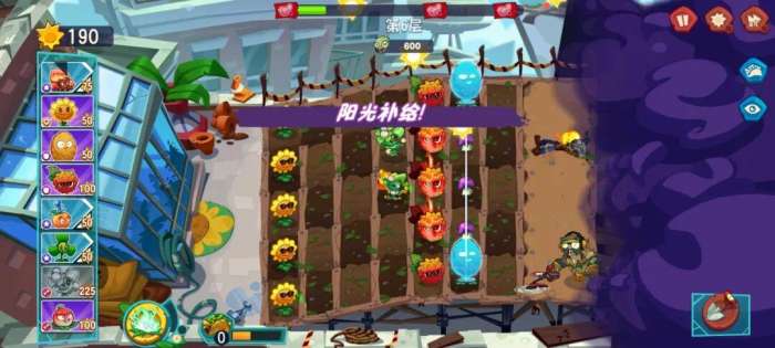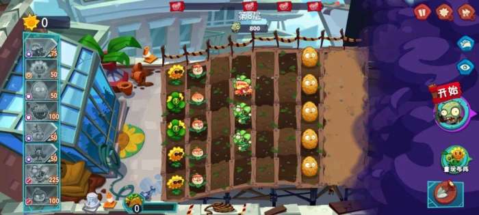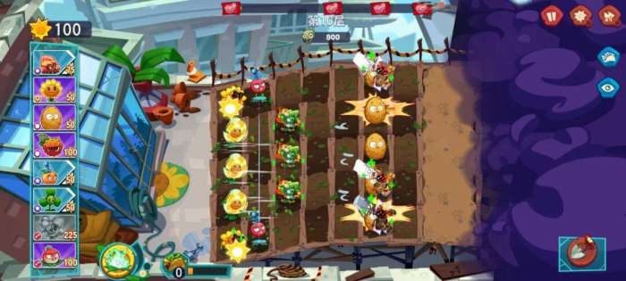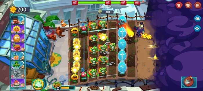 来到第2关,前期的布局和第1关一样,按照节奏打,后期可能会损失一些防御植物,赶紧种植上,也能顺利通关。