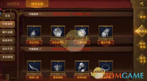 a、玩家可以在在五个区域内探索获得宝藏奖励;除了第一个中原遗珠和未知区域外,剩余三个区域是有开启条件的,达到条件后才能进入探索,而且每个区域每天是有探索次数限制的,大家要记得探索哦。