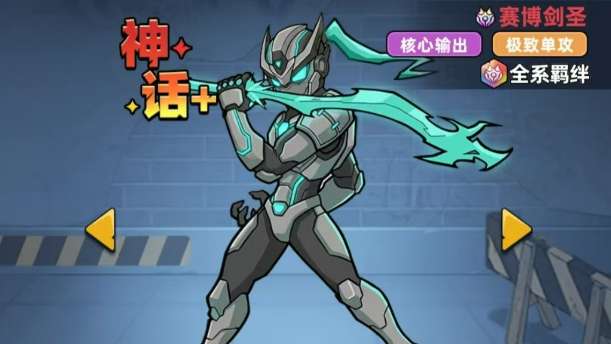 先说赛博剑圣。这个角色属于神圣系,品质是稀有,想要的话得去神话宝库里招募。他有个比较特别的地方,就是能把队伍里已经解锁的羁绊效果全部激活,这对整体配合的提升还挺明显的。他的技能叫"圆月斩",可以主动放,也可能在普通攻击的时候随机触发,所以伤害输出比较稳定,不会打着打着突然断档。终极技能是一次高伤害的单体斩击,而且游戏把这次斩击算作普攻,所以打完之后还可能再触发"圆月斩",连起来就是一波不小的爆发。面对那种血厚的精英怪,用他压制效果相当不错。