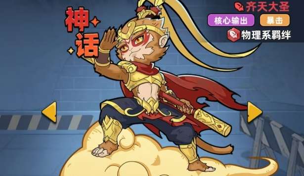 然后是齐天大圣。同样是神话品质,他的打法和剑圣不太一样,走的是普攻联动的路线。释放战技之后,下一次普攻必然会触发额外伤害,还带破盾效果,对付那些有护盾的敌人特别好用。开了大招"大圣真身"之后,普攻触发额外效果的概率会更高,同时每叠一层都能提升自身攻击力。换句话说,战斗时间越长,他输出越高,越打越猛。打持续时间比较长的关卡,带上他会很合适。