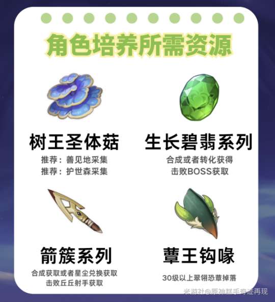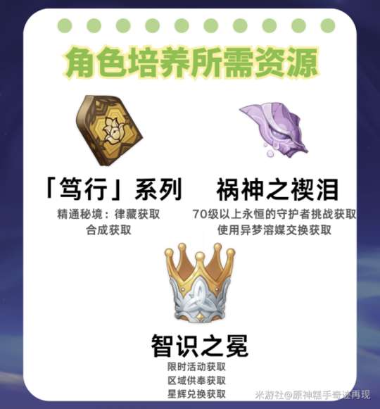 本版块带来角色基础信息和培养材料(及其来源)的介绍。