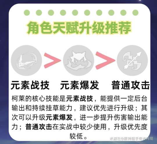 各位旅行者大家好,原神5.1版本卡池已经开启,四星草元素输出角色柯莱同时开启了复刻,相信不少旅行者已经获取了这位角色,本篇攻略将从基础信息、武器推荐、圣遗物推荐、加点分析、命之座解析和配队推荐这六个维度带来详细的介绍~