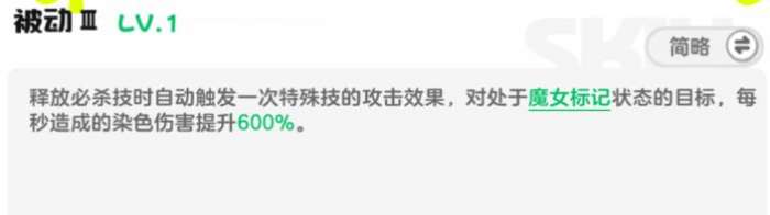 处于魔女标记状态下的目标每秒将受到0.5点染色伤害,被施加颜色标记时会触发星坠效果,受到基于芙蕾雅攻击力的标记伤害,星坠的攻击间隔为3秒。