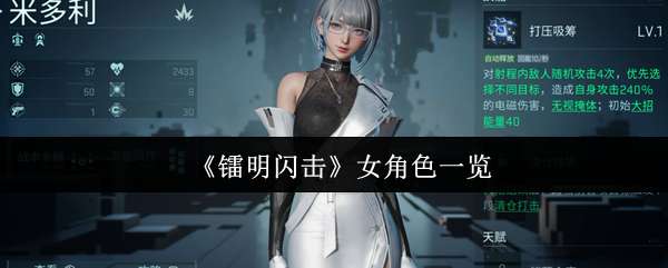 镭明闪击女角色有哪些?肯定有很多新手小伙伴们,对于这个问题都非常的好奇了,实际上游戏当中的大量女性角色,都附带有极高的强度,本期小编给大家专门介绍一下,在镭明闪击内女角色都有哪些值得培养,希望这些内容可以帮到小伙伴们。