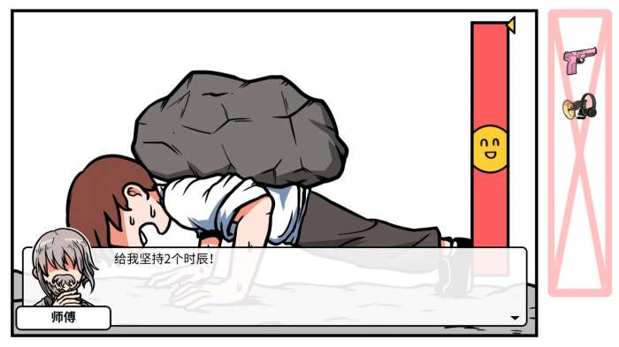 背负巨石平板支撑2个时辰,本质依然为QTE小游戏,连续打中3次过关,难度逐级递增。