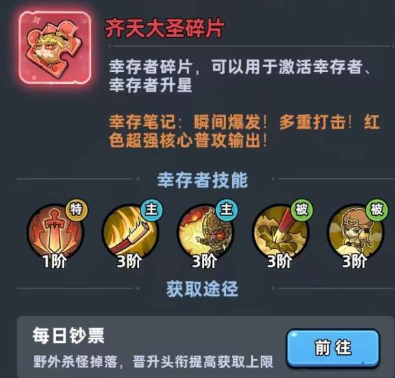 大圣本身就归属于物理系羁绊,核心的优势就是暴击率,还有暴击伤害。定位团队主C是比较合适的,另外他的碎片在获取时一点都不会费劲。基金返还,还有特权卡兑换也可以拿到,另外在野外刷怪也可以掉落。在晋升头衔之后还能获取上限,并且还可以进一步的提升。中低投入玩家可以跟着日常玩法去走,可以稳步的去积攒碎片,提升等级,资源的门槛是可以直接拉低的。从技能机制方面来看,大圣的核心战斗力主要就是靠普通攻击打出来的。