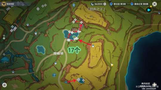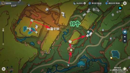 路线三:这里有19个,右侧起始点要爬山,注意卡齐娜的能量,不然爬一半就要手动爬山了……