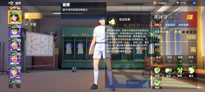 井泽守作为SR球员后期如果强度不够的话,就放在前期过渡期使用完全足够,因为在中前卫球员里面其实井泽守能够造成的进攻压迫反而是不出的,且井泽守最独特的一点是具有一定的空中优势,这一点的话基本是其他球员无法替代的,井泽守在整体的球员评分上面有159的评分,比一般的SR球员还是还要高那么积分的,在其中大家可以利用到的还有抢点17、传球18、抢球20、争顶19这几项数值,因为根据目前的六维图来判断井泽守的属性效果都是比较均衡的,当然其中最突出的是预判这项属性的分值,有22分的基础上面他做中前卫就没有问题了,其他的几个比较游优势的属性就是上面提到的这四个,所以球场上面比赛的话这几项动作都是他会常用到的。