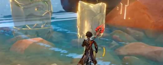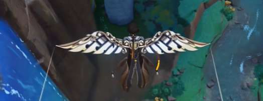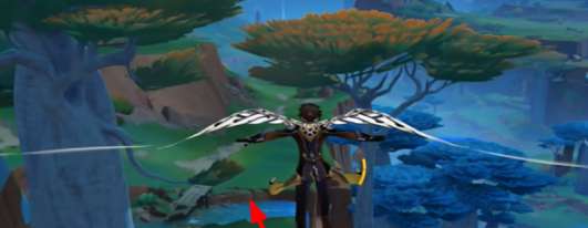 3、接着往瀑布下方飞行,最后降落在亮光点的位置。