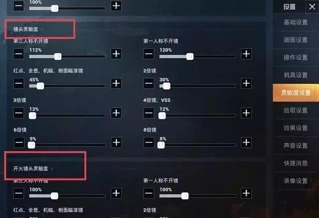 与此同时,镜头灵敏度也要随之改动。那么,镜头灵敏度又该怎样调呢?同样的,跟开火灵敏度一样,镜头灵敏度也不适宜太高。镜头灵敏度,就是我们开镜的那一瞬间的灵敏度,就是开镜后不开枪的灵敏度。这个也是很重要的,因为它会影响我们在开镜的那一瞬间会在那个点上,就是看我们能不能准确地瞄到我们的敌人身上。这个灵敏度太高就会使得我们开镜的那一瞬间很飘,瞄不准敌人,而当我们第一时间瞄不准敌人,结果一般都不太好,我们就会一下子处于劣势。