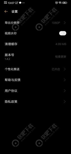 3、进入设置界面后有许多的功能选项,其中有一个【视频水印】的选项后边默认是开启的,点击一下即可将视频水印进行关闭。