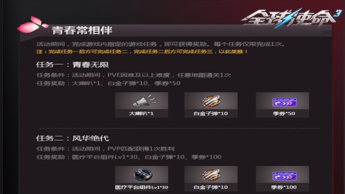 活动期间,只要完成游戏内指定的游戏任务,就能获得丰厚奖励。玩家需要登录官方活动页面查看任务内容,熟悉任务条件后再进行游戏。从任务关“青春无限”到“巾帼须眉”,似乎在诉说着国联将士们的成长史,记得按照任务顺序完成任务哦!完成任务关不仅能领取到海量季券和道具,还有珍贵的白金子弹。白金子弹用于开启幸运白金靶场,每消耗10子弹射击靶子有几率获得超能-闪电枷锁、超能-碎星炮等强力武器!抓紧完成活动任务,赢取心动好礼吧。
