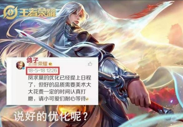 王者荣耀在老皮肤中令人不满的就是李白的凤求凰,2018年5月18日承诺优化凤求凰,粗略算一下,都过了四百多天了,直到现在依旧没动静,导致玩家的不满越来越严重。这样使得官方不得不出来回应,公布了凤求凰的优化时间,感兴趣的玩家一起看看吧!