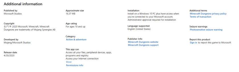 早在去年微软就宣布要将《我的世界》IP之下的一款动作冒险游戏发售,如今半年过去了,PK手游网东东终于发现这款《我的世界:地下城(Minecraft Dungeons)》,原来它已经悄悄登陆微软Microsoft Store商店了,看来距离上线是不远了啊!