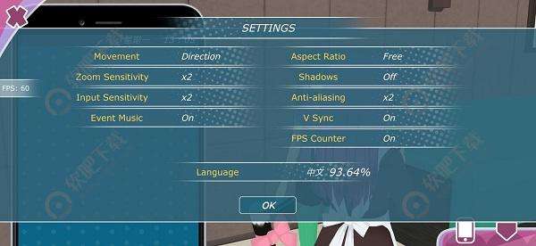 3、点击之后进入设置界面,在设置界面有许多的功能设置选项,点击最下方的【language】选项,在众多的语言选项中找到中文的标志,点击一下即可进行切换,目前最新版的少女都市手游中的中文汉化进度到达93%。