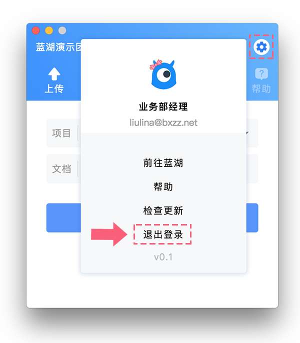 如果你需要切换/退出当前帐号,点击【蓝湖 Axure 客户端】右上角的“设置”图标,选择“退出登录"即可。