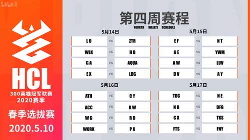 300英雄冠军联赛小组积分赛已经开始进入了倒计时,本周作为300HCL小组积分赛的第四周,第一批出线名额和淘汰名额即将正式出现。在小组赛中积分前两名的队伍将进入到小组出线赛阶段;如果小组赛中积分相同,则会进行加赛。命运之战的鼓声已经敲响,哪个战队才能晋级呢?我们拭目以待。