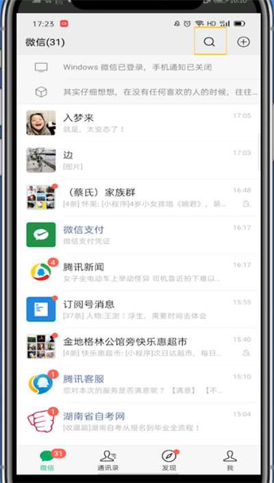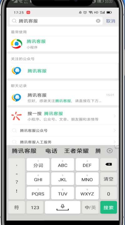 2、点击右上角的搜索,搜索腾讯客服