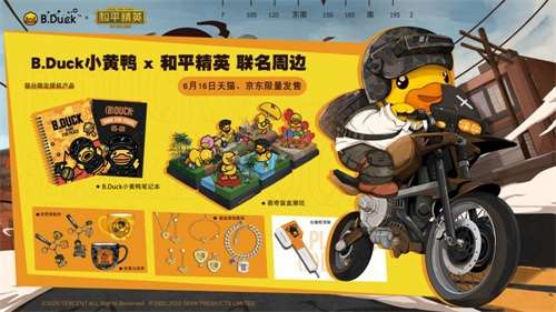 B. Duck小黄鸭是中国香港著名产品设计公司Semk Products Ltd (森科产品有限公司) 旗下主力品牌,其凭借着潮萌的形象,B.Duck小黄鸭在全世界范围内有着颇高的知名度。此次,《和平精英》携手B.Duck小黄鸭进行深度联动,潮萌小黄鸭不仅亮相游戏,带来趣味彩蛋玩法,同款道具也让游戏内充满潮萌气息。同时,头戴“三级头”,挥动平底锅,骑着摩托车的小黄鸭形象也从手机屏幕中跨次元穿越,附着在衍生周边上,让特种兵和粉丝真实可感,这种联动的跨界模式使联名产品突破了固有圈层,由现实生活渗透至游戏场景,以最直接的方式,精准触达了游戏核心玩家及IP所覆盖的粉丝受众。