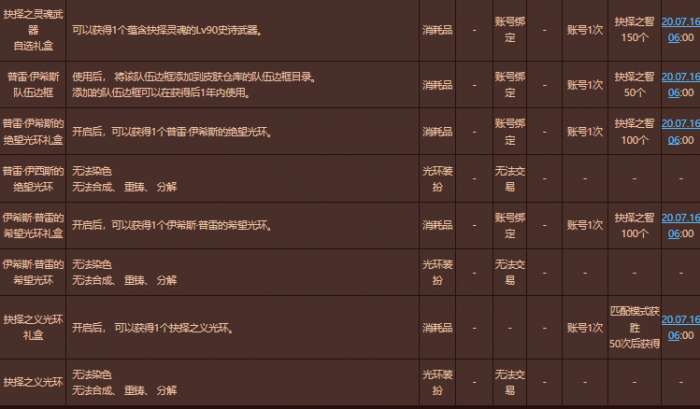 * 在匹配模式获得50次胜利后会得到抉择之义光环礼盒作为纪念奖励