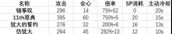 作为这次横向对比中唯一一把超限过的十字架,原典在面板上自然是碾压了其他的十字架,范围也比常规的十字架大出了许多;但是主动技能的伤害倍率竟然被“锦筝叹”超过了,SP的消耗更是四把十字架中最高。