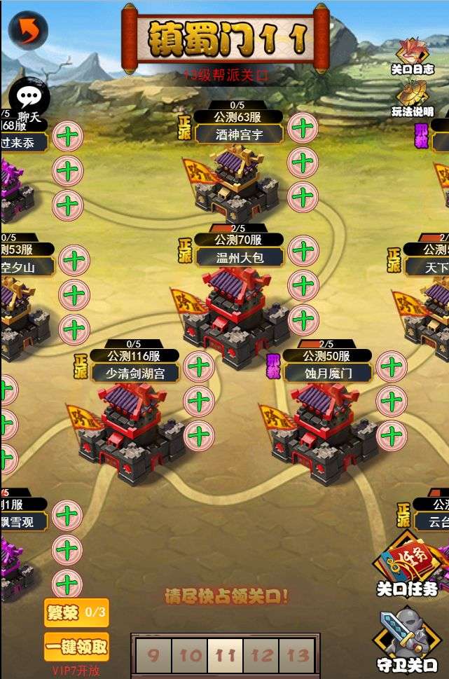 2.镇蜀门:镇蜀门也是银两的获取来源之一,6级以下帮派可以通过占城获得银两,关口越好所获银两越多,而6级及以上帮派则可以通过繁荣截杀镖车获取银两,掉落的闭关宝箱中也有几率开出银两。(镇蜀门玩法需要6级帮派才能玩,所以还是那句话,先升级先升级先升级!)