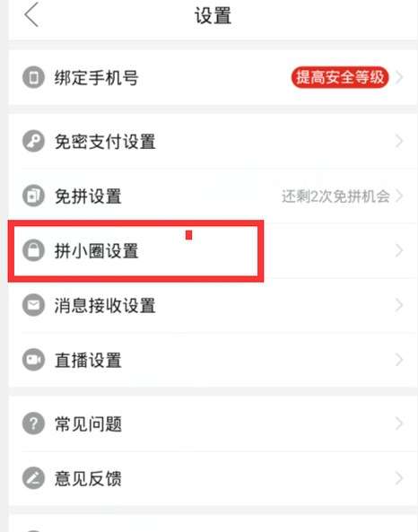 2、在设置选项选择【拼小圈设置】进入拼小圈设置界面