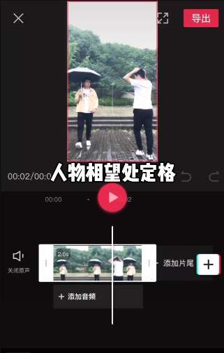 7.当人物相望的时候让这个视频定格,切除后面的部分并在此处选择一个动画以和后面的近景视频有一个很好的过渡效果,然后点击右侧的+号导入一个近景视频;